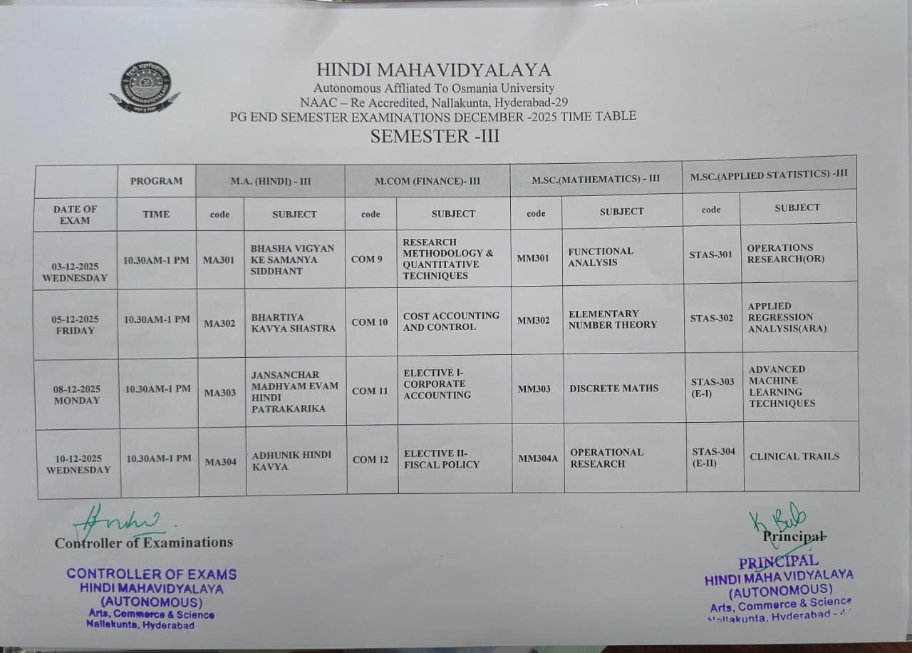 - PG-END III SEMESTER EXAMINATIONS TIME TABLE-DEC 2025 New !
