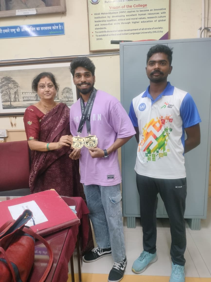 5 students for Hmv Physical education department selected for Sout zone Inter university Handball Tourbament held periyar university, salem T.Kausik Bba 3 rd Year p .Sudhakar Bba 3rd Year M hemanth Bsc(mpcs) 3rd year kaerthik Prasad b voc Hta 1st year shaik imran b voc Hta 1st year
